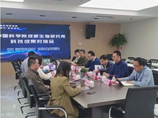游炜臻(右二)与中国科学院成都生物所产学研对接