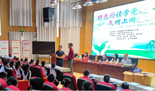 活动上,村镇办党委代表向师生介绍了“绿书签”进校园的重要意义,并向学校捐赠图书。