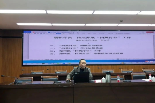 此次培训邀请福州市委宣传部三级调研员胡金清亲临授课,胡金清通过“扫黄打非”的概念与职责、“扫黄打非”工作法规依据、如何抓“扫黄打非”工作、如何抓“扫黄打非”进基层示范点建设四个方面进行了深入浅出的讲解,为我区下一步做好“扫黄打非”工作理清了思路。