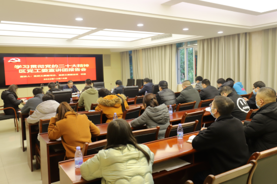 12月16日下午,区党工委宣讲团成员、区纪工委副书记、监察工委副主任林健赴村镇办宣讲党的二十大精神。村镇办班子成员、机关支部党员、博海湾社区两委干部共30余名党员参加学习。
