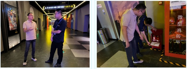 检查组重点检查了消防安全管理制度是否落实、消防设施器材是否完好有效、疏散安全通道提醒是否到位、针对近日登革热疫情放映厅消杀工作是否落实等情况,并对现场发现的问题提出整改建议。