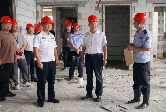 调研组实地察看南屿派出所综合业务大楼项目建设进展情况,着重了解项目建设过程存在的难点,协调解决存在的困难与问题。在调研现场,林勉建结合实际,向基层干警、党员及项目相关人员宣讲党的二十届三中全会精神。