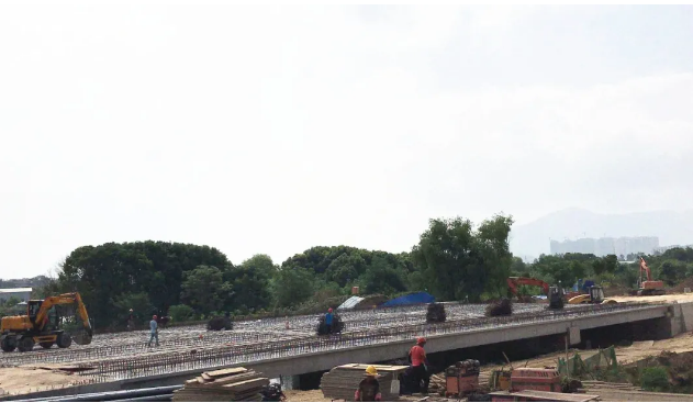 目前,环湖路一期已完成桥梁(K0+510)空心板梁架设、基本完成K0+380~K0+600段路基换填及管线工程,计划9月实现通车。
