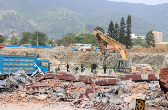 上午九时许,区综合执法局出动执法人员400余人,大型拆除设备3台,对三座违建依法强制拆除。本次行动共拆除一座框架两层、二座框架一层、两间铁皮房及周边围墙,建筑面积共计560平方米。