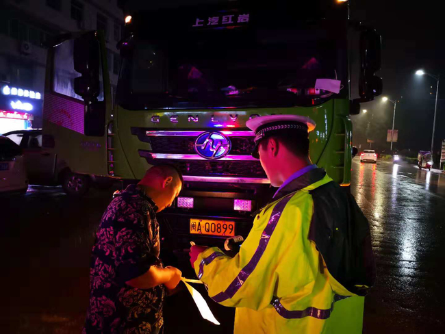 )交警大队利用周末全面开启“白+黑”模式对重中型货车开展集中整治,从源头上打压重中型货车交通违法行为。
