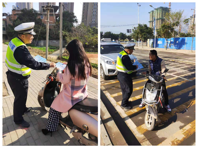 交警大队组织警力深入辖区村居、高校、社区等地点开展电动自行车规范管理“三个一”主题宣传活动。