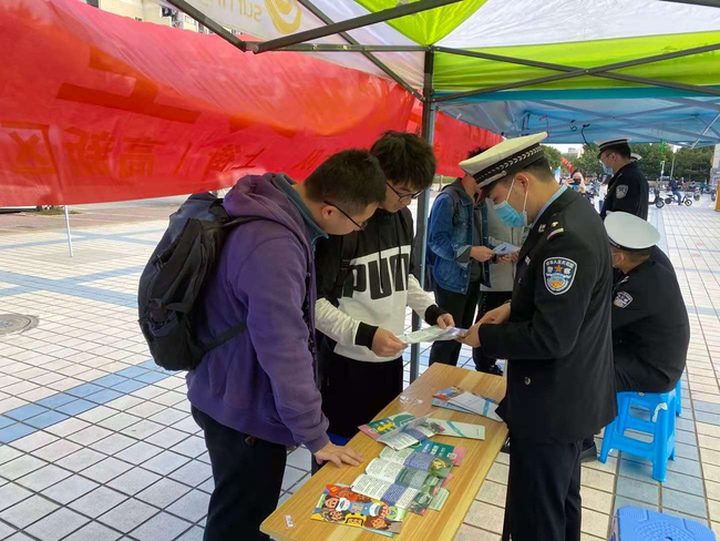 活动现场,成立2个宣传小分队,分别深入福州大学青春广场和闽江学院生活区,通过分发宣传折页、面对面交流、摆放展板和有奖问答等形式,特别针对大学生群体电动车出行较普遍的特点积极展开宣教,倡导师生遵守交通出行规则意识、法治意识,共同营造安全文明的出行环境。