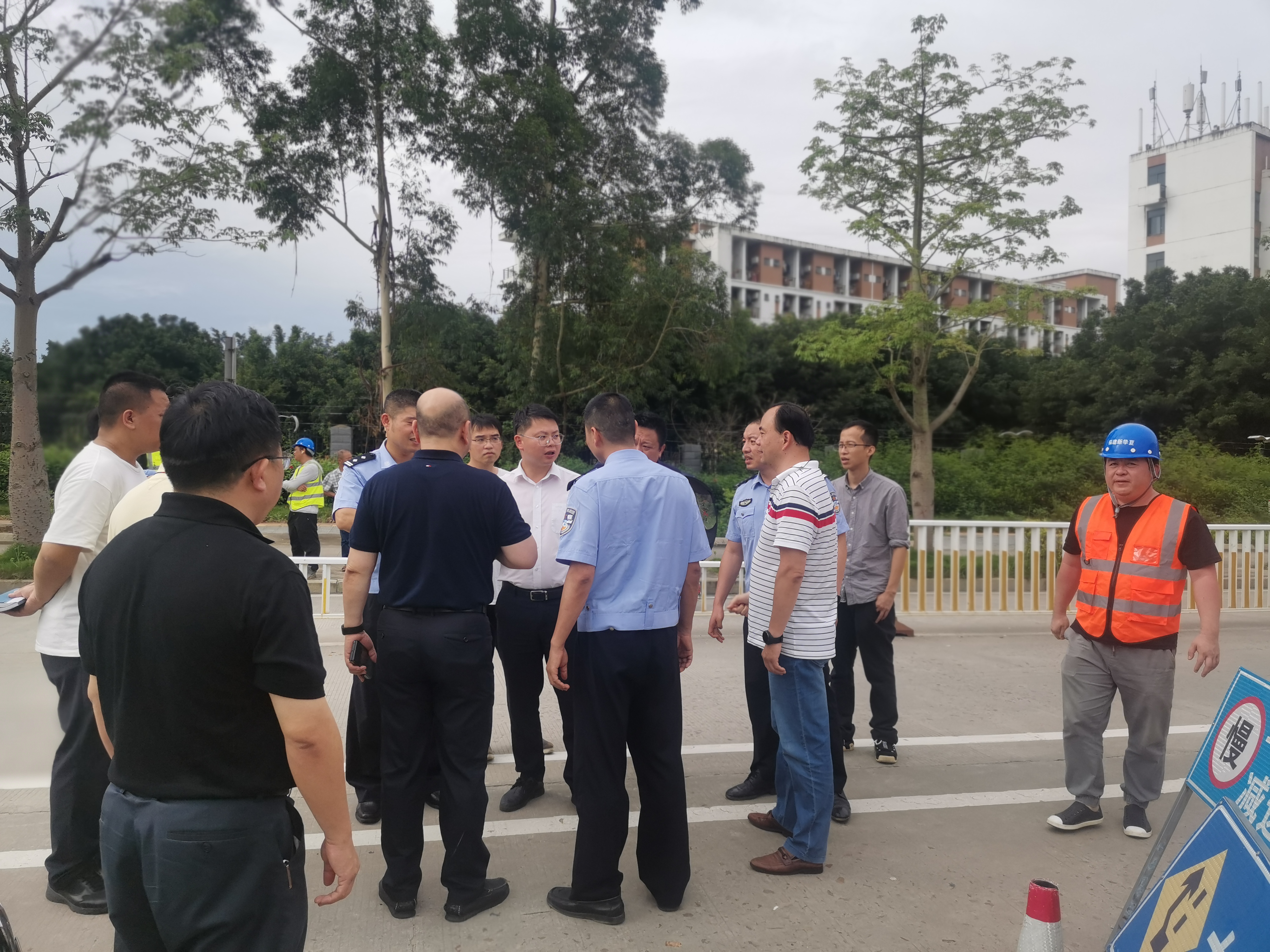 在学府南路(旗山大道口至马保桥)施工路段现场,检查组一行具体查看了对施工路段防护隔离设施、交通警示标志建设情况。随后检查组来到管委会六楼第一会议室对区道安内页材料进行细致检查。