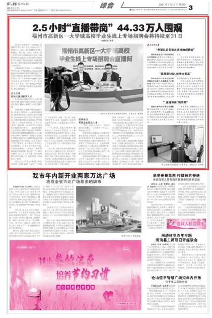 福州市建筑设计院有限责任公司黄晓忠:在我上台介绍前,直播的围观人数是几十万人,这种人数规模是平时企业进高校、参加线下招聘会达不到的,所以这次我们相当于向几十万人介绍了企业。