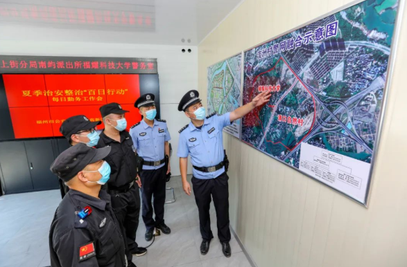 项目开始施工之前,福州市公安局上街(电影天堂 )分局就提前介入,成立南屿派出所福耀科技大学(暂名)警务室,依托分局“e体+智慧赋能中心”,实施项目周边监控全覆盖,实现辖区点线面动态管控。