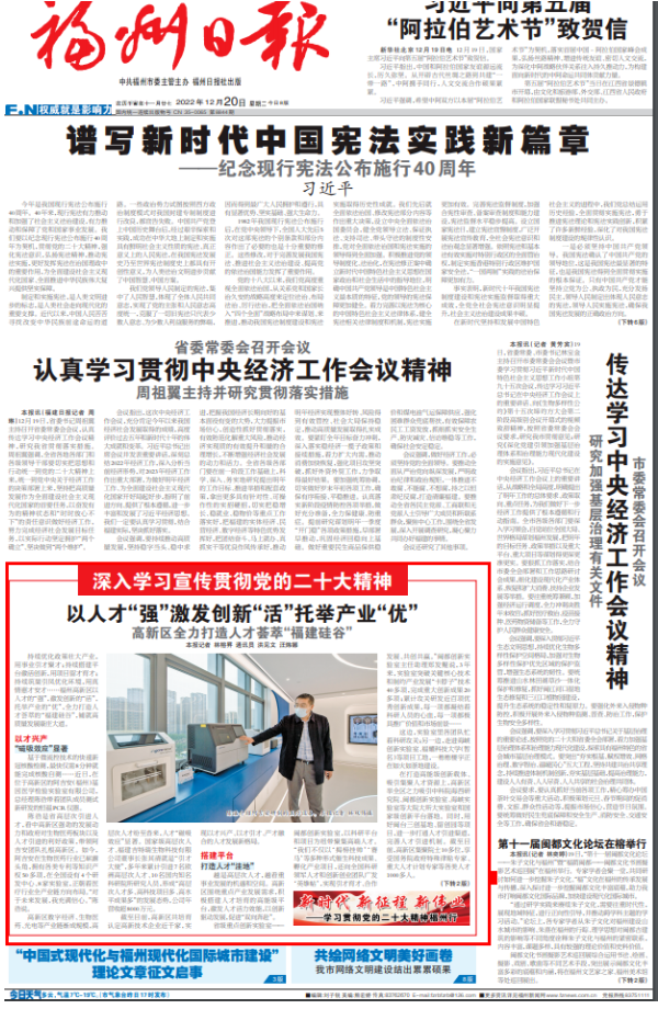 12月20日,《福州日报》头版重点关注电影天堂 全力打造人才荟萃的”福建硅谷“,文章《以人才“强”激发创新“活”托举产业“优”》报道电影天堂 持续优化政策壮大产业,用事业引才聚才;持续搭建平台激活创新,用项目留才育才;持续筑巢引凤优化环境,用真情惠才安才……