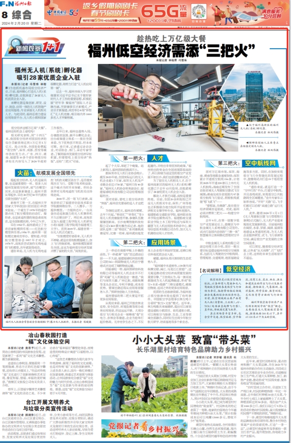 去年以来,福州也强势入局,办赛鼓浓氛围,搞平台孵化企业,出台政策建立体系……放在全国来看,当下优势虽不明显,但未来可期。连日来,记者通过走访企业,对话协会、部门,采访专家学者,了解到福州发展低空经济早有积累,但要想吃上低空经济“热饭”,还有“三把火”可添。