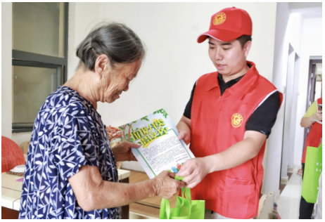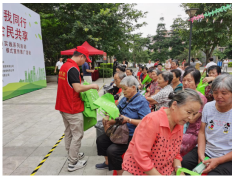 讲座结束后,志愿者们向居民分发宣传手册、环保购物袋等宣传品,积极倡导居民践行文明新风尚,宣传科学垃圾分类方法,倡导文明、节约、绿色、低碳的生活方式,促进居民养成垃圾分类的良好生活习惯。