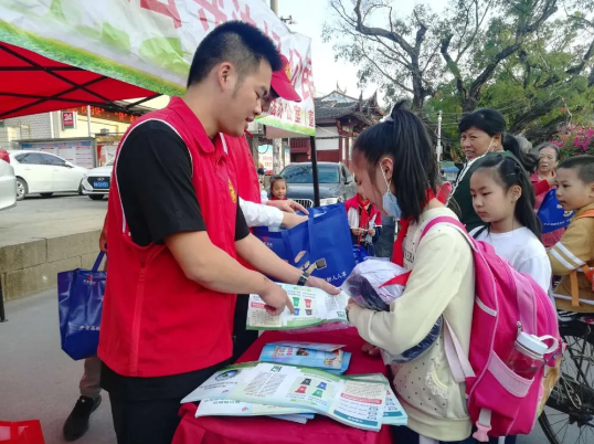 为进一步提升辖区居民对垃圾分类的知晓度、认同度、参与度,11月2日上午,党政办和政法办党支部在新洲村联合开展垃圾分类志愿者服务宣传活动。