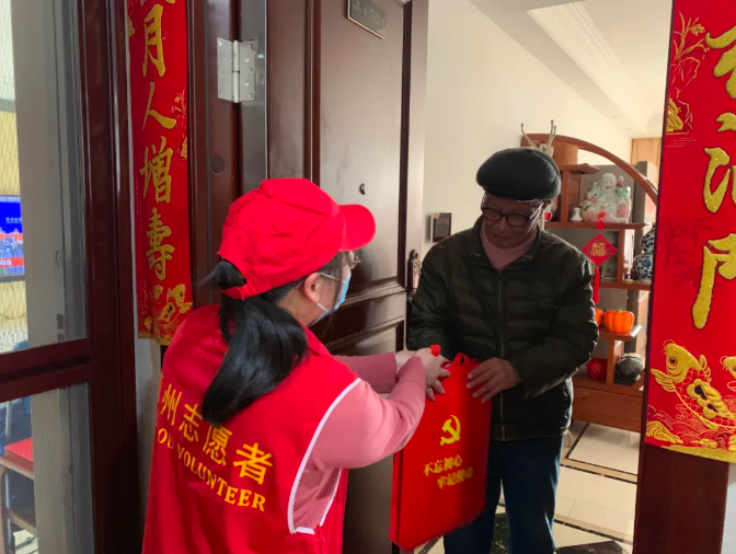 ▲电影天堂 党群工作部机关党支部和“高新邻+”党建联盟志愿者到社区入户送春联