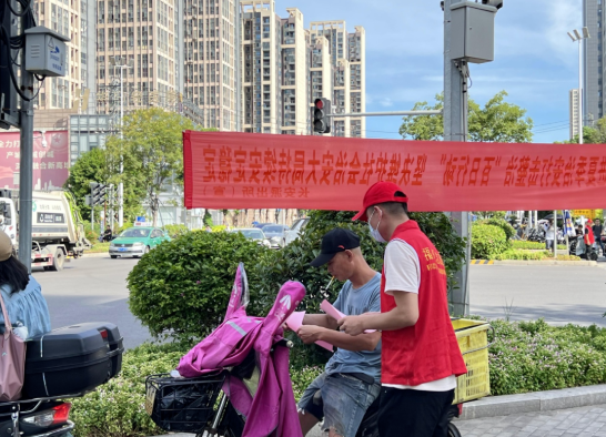 8月26日上午,综合执法局(大队)开展“佩戴头盔 安全骑行”宣传志愿服务活动,党员、入党积极分子主动发挥带头宣传作用,在地铁厚庭站十字路口,开展文明宣传活动。