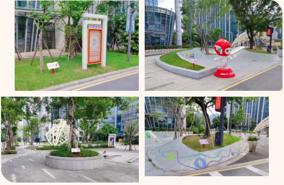创新园企业云集,创客大街是园区企业职工活动的重要场所。我们选址此地建设新时代文明实践主题公园和文明实践中心,旨在引导更多企业、企业职工参与文明实践活动。主题公园辐射覆盖500多家企业,4000多名人才,汇聚广电网络、浩蓝光电、中海创、北卡科技、迈新生物等优质企业。