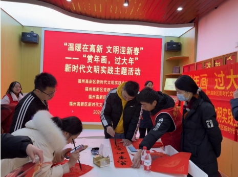 活动现场除了年画展,现场还开展手书春联和“福”字活动,一幅幅火红的对联、一个个精致的“福”字,满载着节日的祝福,字里行间流淌着温馨和幸福,为即将来临的新春佳节增添了浓浓的年味儿。