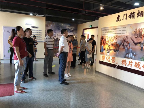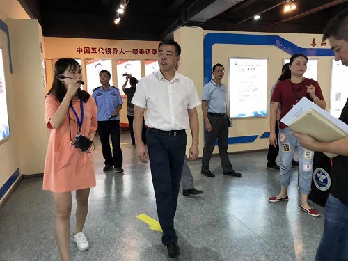 禁毒教育基地实地调研。彭国华调研员首先肯定了禁毒教育基地的建设,对基地内宣传展板所展示的内容等表示认可。彭国华调研员建议下一步不定期组织学生过来参观学习,同时建议可以和周边的生物医药产业园制药中心合作,加大禁毒宣传教育。